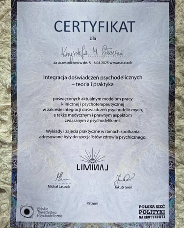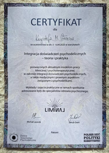 Mam kilkanaście lat praktyki w eksploracji zmienionych stanów świadomości, zarówno we własnej transformacji, jak i w prowadzeniu innych przez ich wewnętrzne procesy. Moja wiedza łączy różne nurty psychologii, tradycyjne ścieżki szamańskie oraz współczesne podejścia do integracji doświadczeń psychodelicznych. Opublikowałem książki w tym temacie, a moje metody bazują na realnym doświadczeniu i sprawdzonych narzędziach pracy z umysłem i podświadomością.